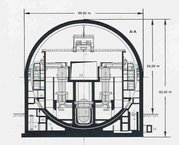 Querschnitt eines Reaktorgebäudes in Höhe des